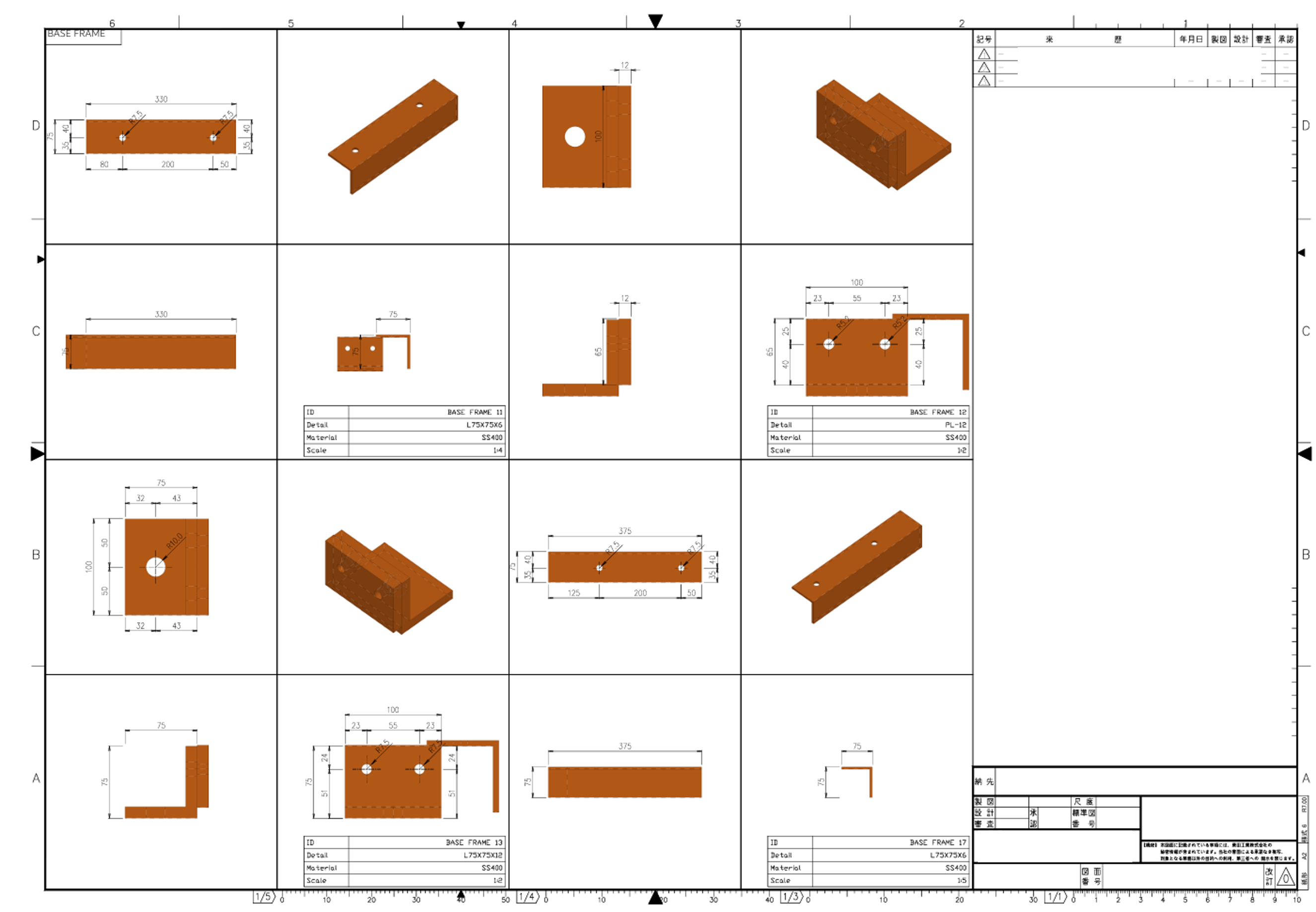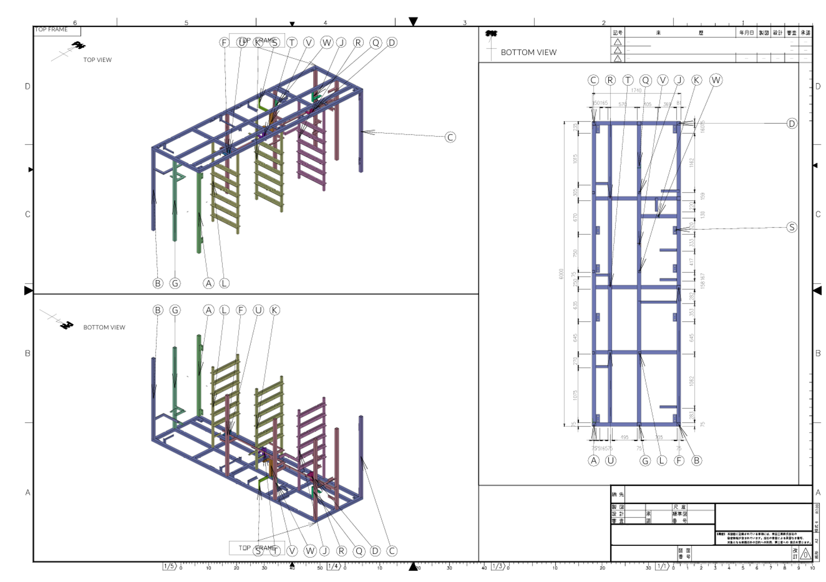 The frames required dense linear dimensions to describe cross members and module locations in top/bottom views. Because dimension text becomes cluttered quickly, we had to make smart placement decisions to keep drawings packed but readable, without sacrificing manufacturing precision.